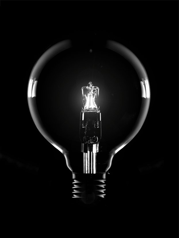 Nature morte phototgraphie d'une ampoule allumée.