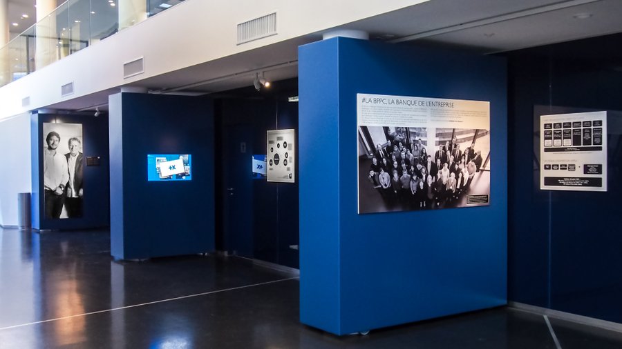 Création d’un espace d’exposition évolutif au cœur même du hall d’accueil du siège social de la banque BPPC à Marseille.