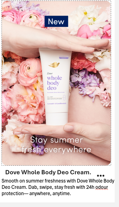 Odour, chafing and skin irritation make women uncomfortable in their curves. Enter Dove and my chance to work with the super ECD, Linda Elander at Ogilvy London to launch Dove’s new whole body deodorant From TikTok, to Insta, YouTube and Pinterest, we wanted a fresh, fun and playful tone that appeals to every body. Casting real women who were beautifully adorned in 100s of fresh flowers, we showed that with Dove’s new whole body deo, you can ‘smell beautiful everywhere’.