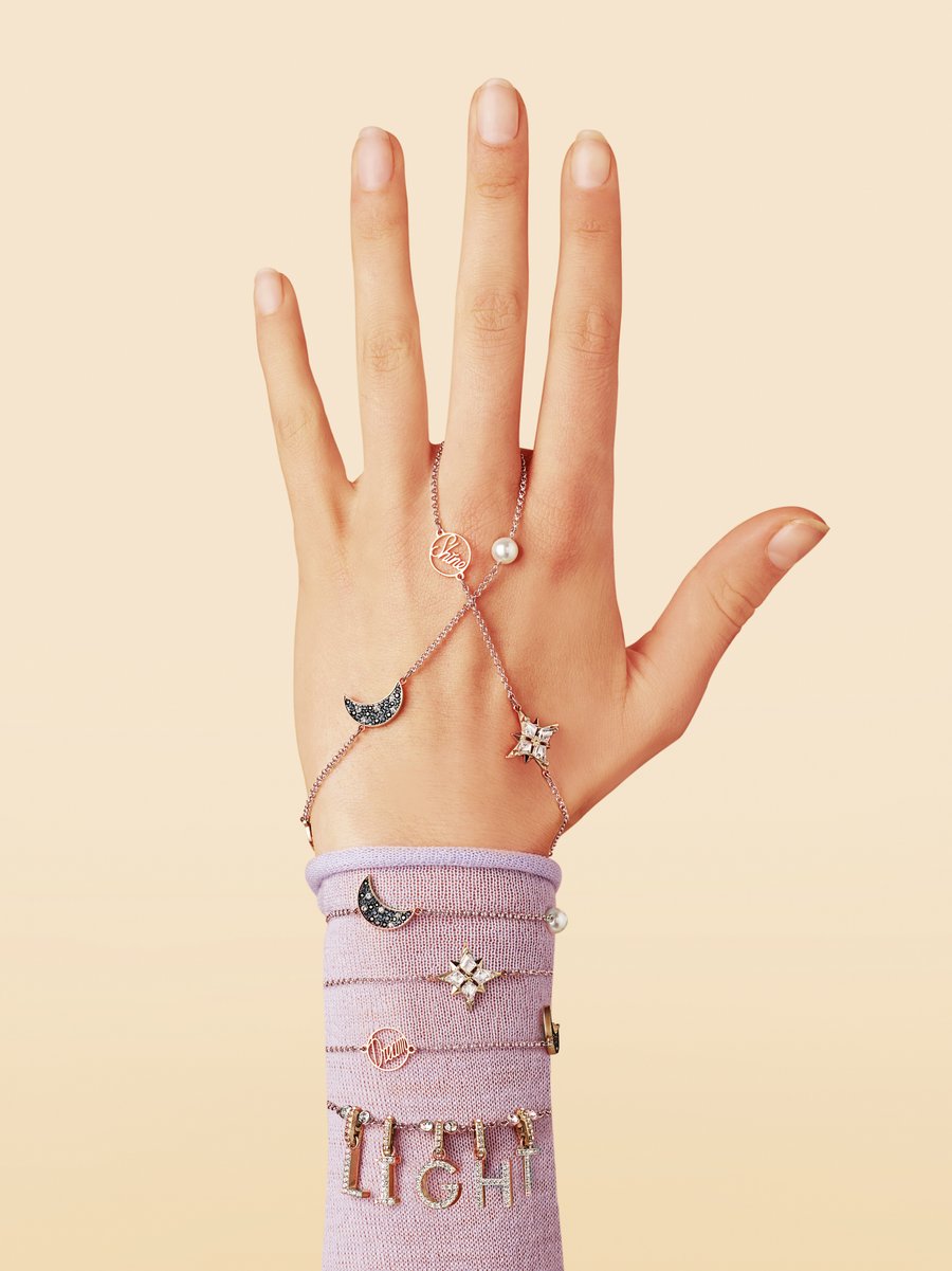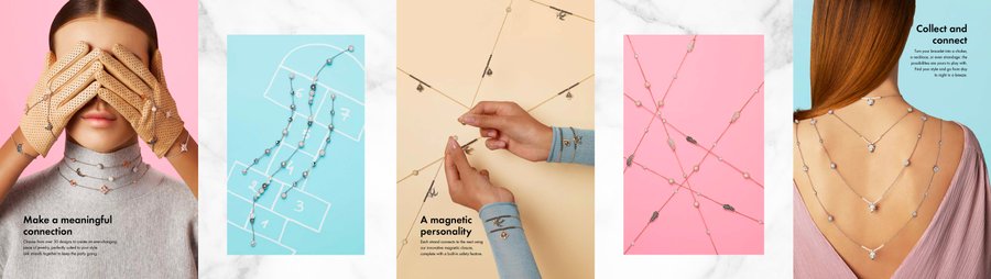 Series of fancy bracelets, adjustable with magnets and removable charms. The whole is part