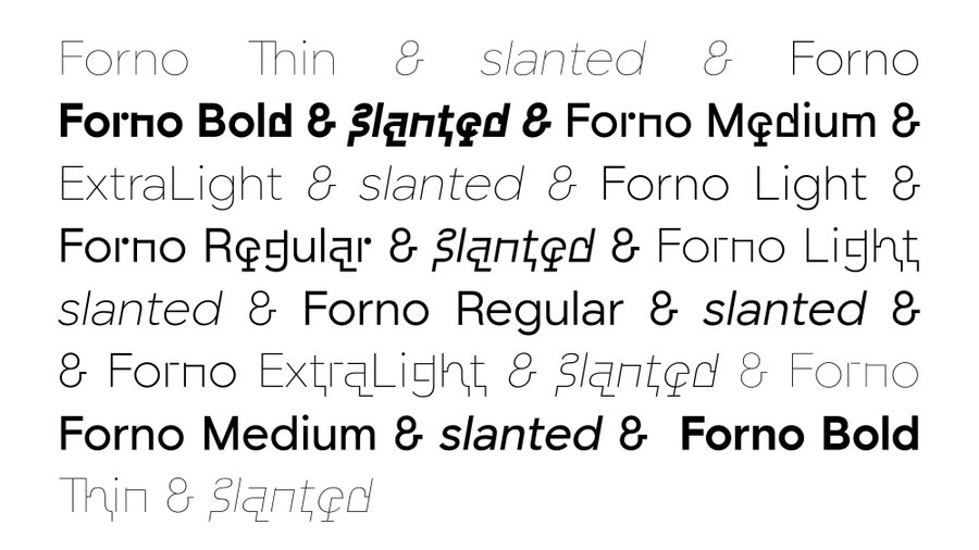 La Forno s'étend du Thin au Bold et propose une version slanted.