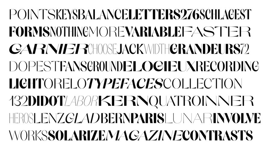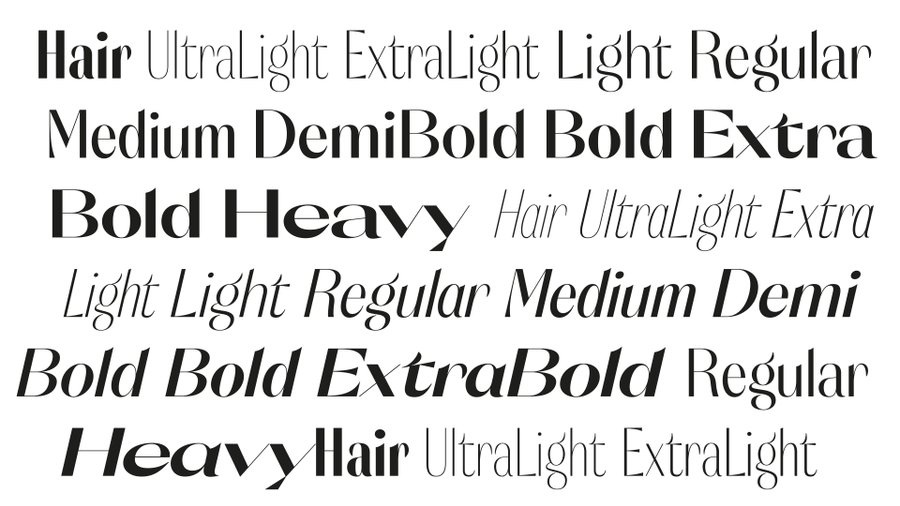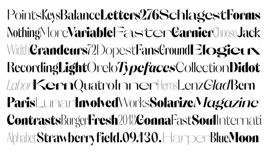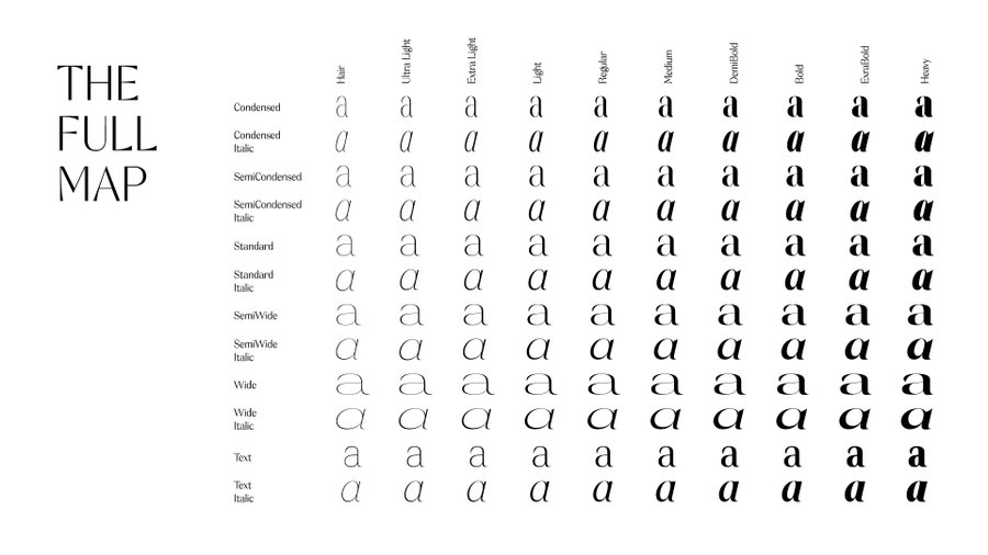 Orelo Typefaces Collection permet aux utilisateurs exigeants de travailler avec plus que les styles prédéfinis d'une famille de polices standard. Vous pouvez profiter d'un éventail de quantités presque infinies de poids et de largeurs, se mélangeant en douceur du Condensé Hair au Large Heavy. Sélectionnez et utilisez n’importe quel style intermédiaire, un à la fois ou tous mélangés simultanément. Cette liberté offre de nouvelles possibilités créatives, que vous conceviez pour l'impression ou pour le Web.