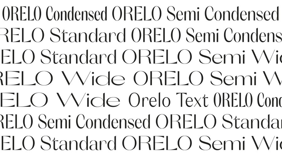 C'est plus qu'une typographie, c'est une famille typographique développée en Variable-Font. Les variations se font sur 3 axes : largeur, graisses et italiques. Elle propose 120 styles, du Condensé Hair au Large Heavy avec leurs italiques respectifs ainsi qu'une version spéciale pour les textes longs. C'est une typographie inspirée des Didots françaises mais proposant une nouvelle approche de dessins. Équilibrée, contrastée aux formes contemporaine, Orelo est destinée aux titrages et textes courts.