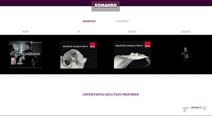 Atelier Pascalie, Bforbank, Brandt, Canal +, Carré Noir, Champagne Collet, Matthieu Cozette, Crépuscule, DeDietrich, DesignFlux, Ehhop, Fluocaril, Heurtey, INTERAVIEW, Komando, Labeyrie, La poste, Lesieur, MacDonald, Make the Price, Nissan, Nobank, La poste : Père Noel, Samsung, Sodexo, Sony, Yovanovitch, axa, Hermes, Bouygues, Hotmail, Infosport, ING Direct, Mercedes, Prix d'amérique, PMU, wwf, K
