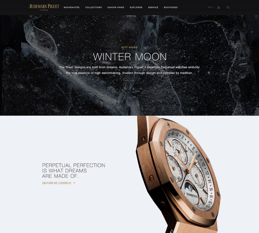 Audemars Piguet has always nurtured a special bond with nature - and this year is no different. Audemars Piguet's Winter Gift Selection is a testament to the very harsh yet very authentic environment in which the brand was born, and where it continues to live on today - Le Brassus. Forged from the elements, Audemars Piguet's Winter Gift Selection timepieces express all the intricacy and resolve such an environment has infused into the brand.