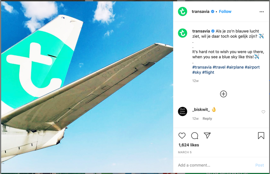 Social media (Instagram, Twitter and FB) for Dutch low-cost airline Transavia. Key is engagement and inspiration.
