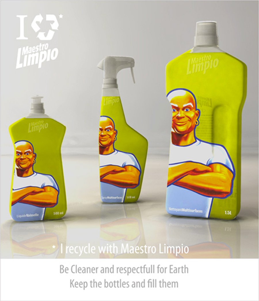 Premier prix du concours international "REFILL" organisé par Maestro Limpio et Designboom.I RECYCLE propose une nouvelle vision des produits ménagers afin de réduire les déchets plastiques au quotidien.