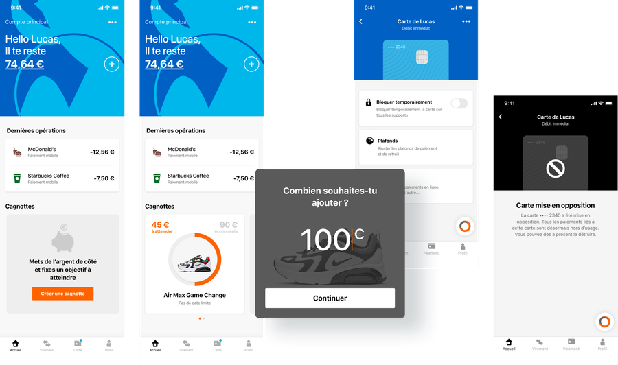 Lead UI / Directeur artistique digital pour Orange Bank. Collaboration sur des projets très divers pendant 2 ans. Maquettes UI, propals, mentoring de juniors, mise en place d'un design system…