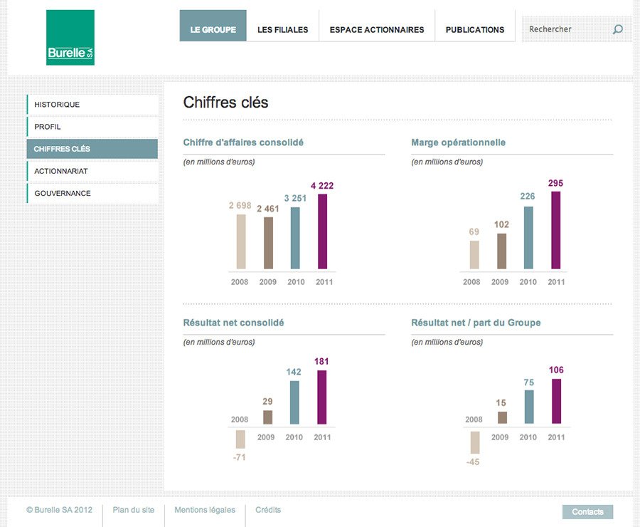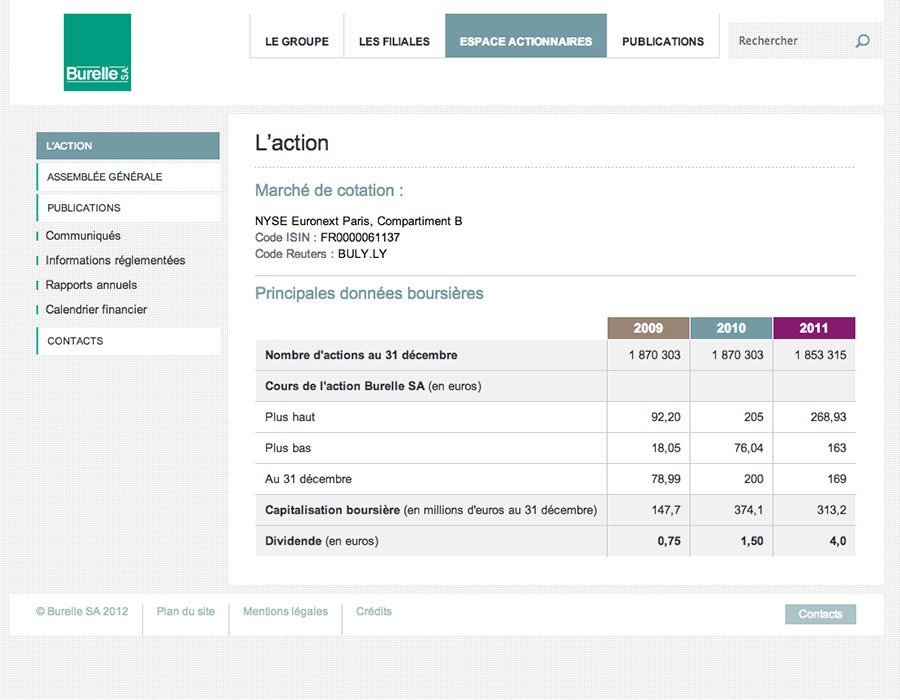 Développement Wordpress pour la Société Burelle à destination du grand public et des actionnaires.