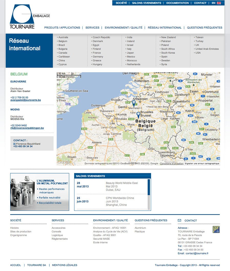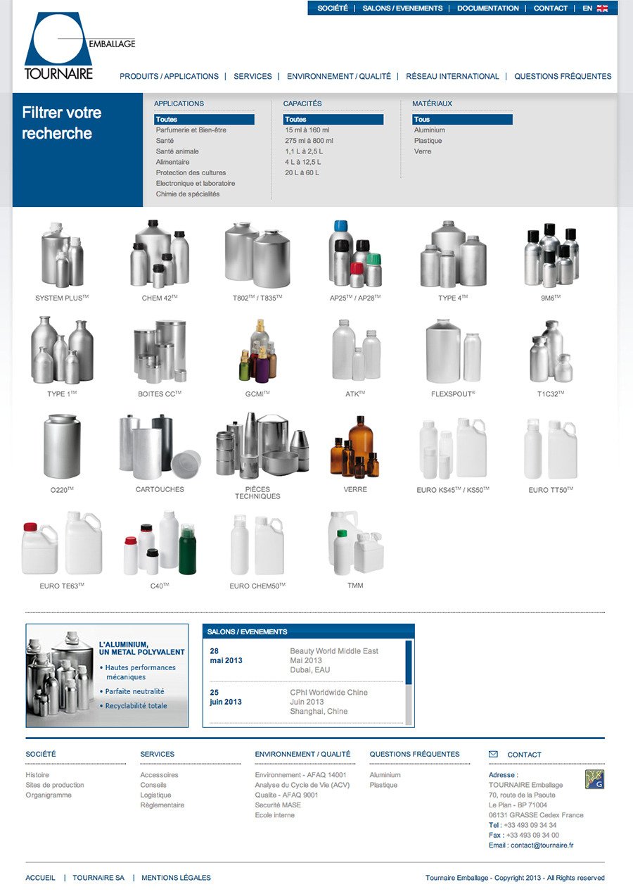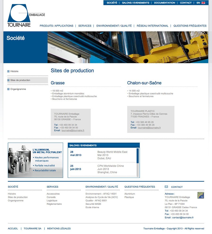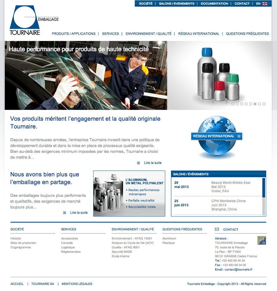 Intégration HTML/CSS/JS et développement Wordpress du site de la société Tournaire Emballage. Type : B2B.