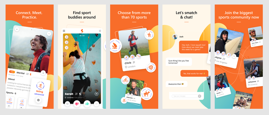 Smatch est une application (iOS et Android) de rencontres sportives. Les fondateurs voulaient donner une nouvelle image plus dynamique à leur Landing Page et à leur image sur les stores iOS et Android, pour aller avec la V2 de leur application.