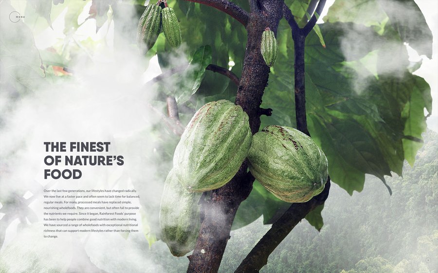 Site experientiel pour la marque de superfoods Rainforest Food.