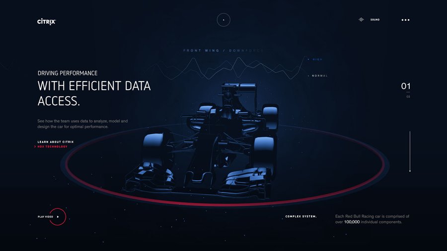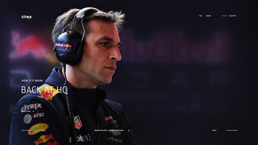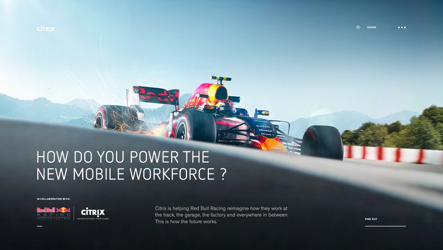 Site événementiel pour promouvoir la collaboration de Redbull x Citrix sur l'event Formule 1,