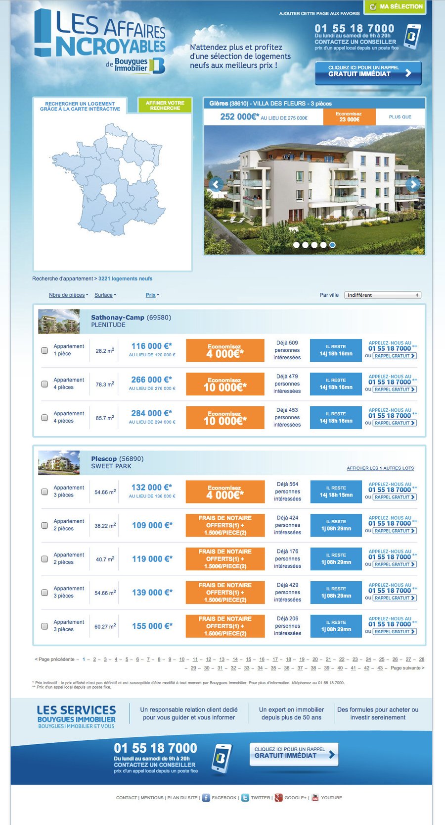 Bouygues Immobilier souhaitait retravailler son site pour que les internautes puissent accéder plus rapidement à toutes les informations relatives aux biens immobiliers