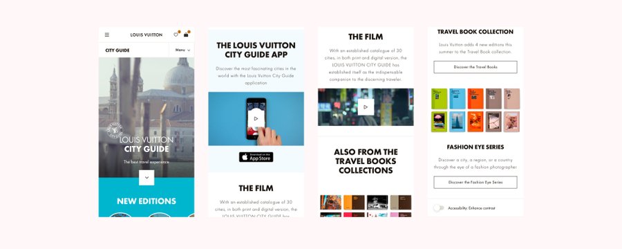 First, refresh an outdated landing page that wasn't making up anymore to the high editorial standards of the Louis Vuitton City Guides books. Second, be one of the first "real-world" implementation of the new design sytem built during the revamp of the main website.