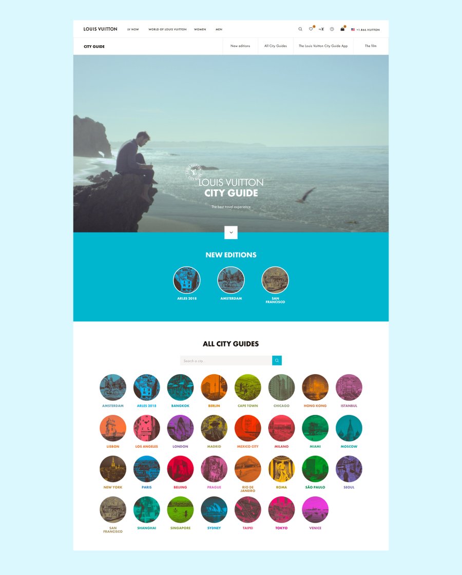 Following my work on Louis Vuitton Website Revamp , I was asked to redesign the Louis Vuitton City Guide landing page.
