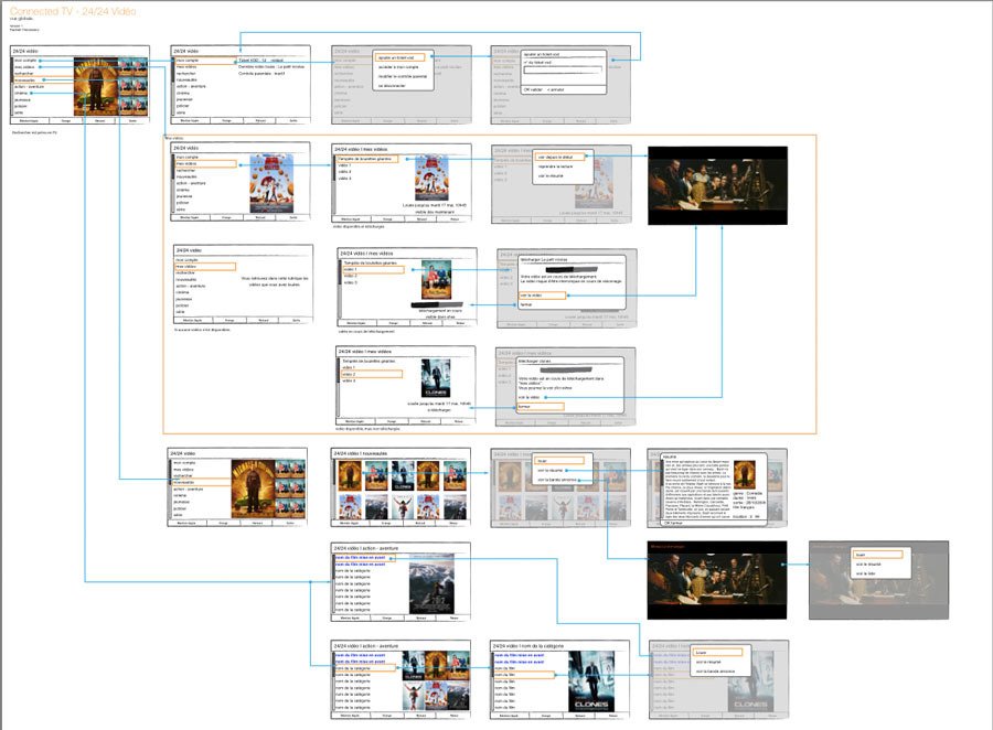 Conception de l'interface pour le portail Orange sur les télévisions connectés LG. Le projet a nécessité, dans un premier temps, de concevoir l'interface dans sa globalité, puis de décliner les différents services disponibles : Cinéma, Sport, VOD, Radio,...