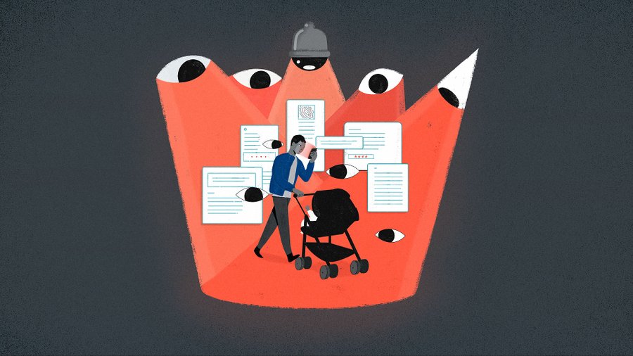 llustrations representing different cases of technology surveillance, commissioned for a presentation by The Danish Institute of Human Rights.