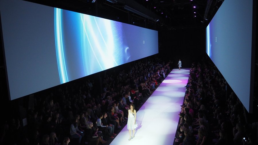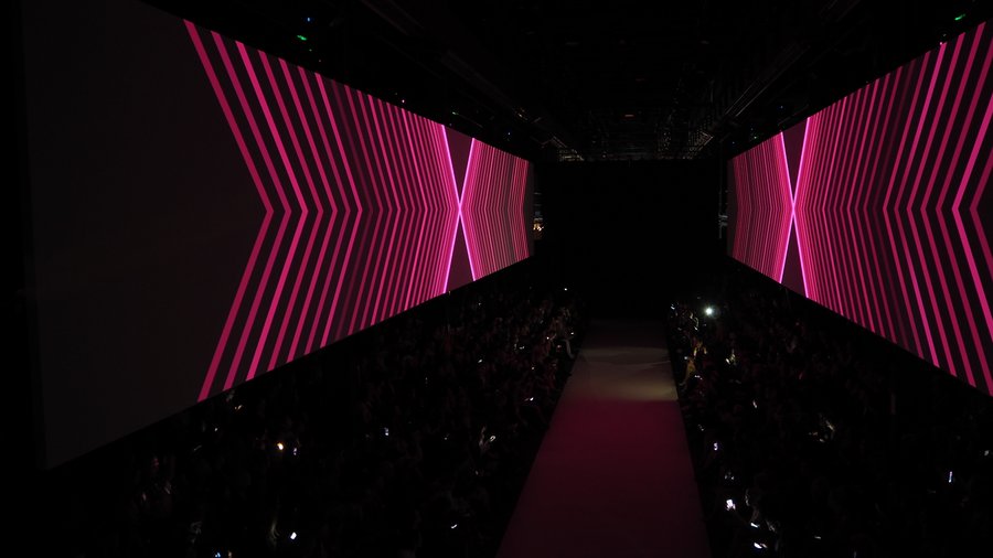the scene was set with two 4K seamless soft-edge projections on either side of a 30-metre-long catwalk.