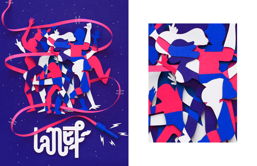 Pour la saison 2018-2019 de La Nef, salle de concert d'Angoulême, j'ai réalisé deux visuels en papier, pour leur communication. Let's dance !
